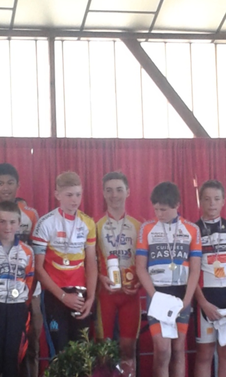 Tout se jouerait donc dans la course en ligne! Pour une course ce fut une vraie course et de mémoire de minimes, on n'avait jamais roulé aussi vite! 30 tours d'un circuit d' 1 km où les 6 coéquipiers narbonais de Loic attaquèrent à tour de rôle à chaque tour! Thomas, seul représentant salindrois, montra sa générosité et de fort belles qualités de rouleur. Répondant présent à chaque attaque, il ne se ménagea à aucun moment et ses adversaires ne l'épargnèrent vraiment pas. Au terme d'une course très éprouvante, Thomas victime de crampes, de son manque d'expérience et d'une concurrence acharnée, ne pouvait hélas rivaliser avec les meilleurs dans le sprint final.