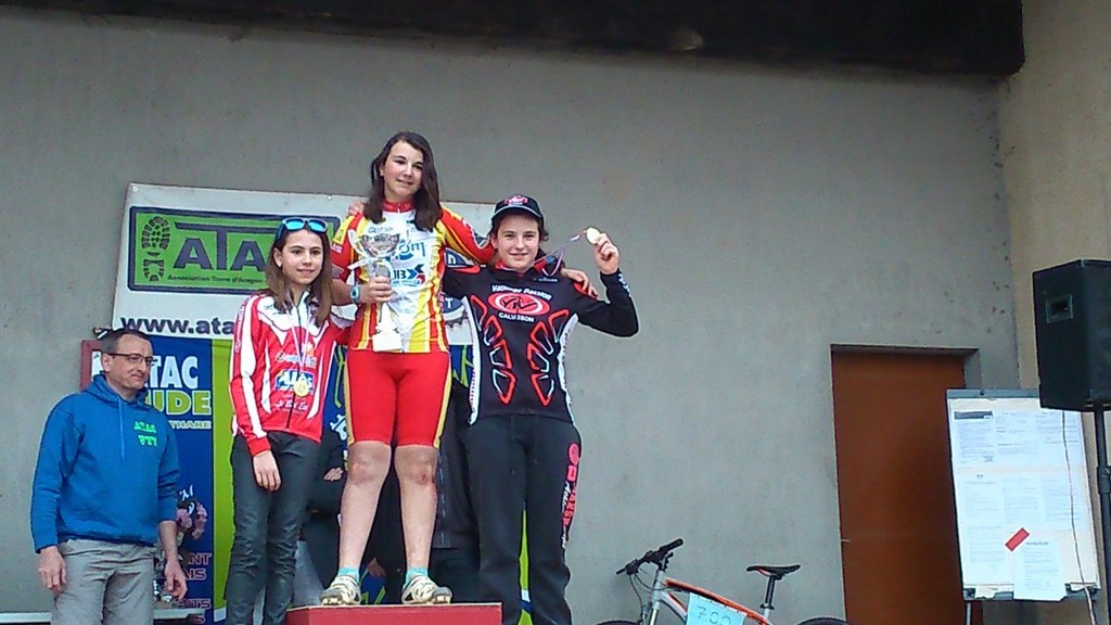 Au classement général, Axelle forte de son exploit en matinée, termine première benjamine. Mais elle monte aussi, et ce n'est pas courant, sur la 2éme marche du podium dans le classement benjamin regroupant garçons et filles! Loan termine 10ème, Thomas 11ème, Loris limite la casse et termine 34ème.